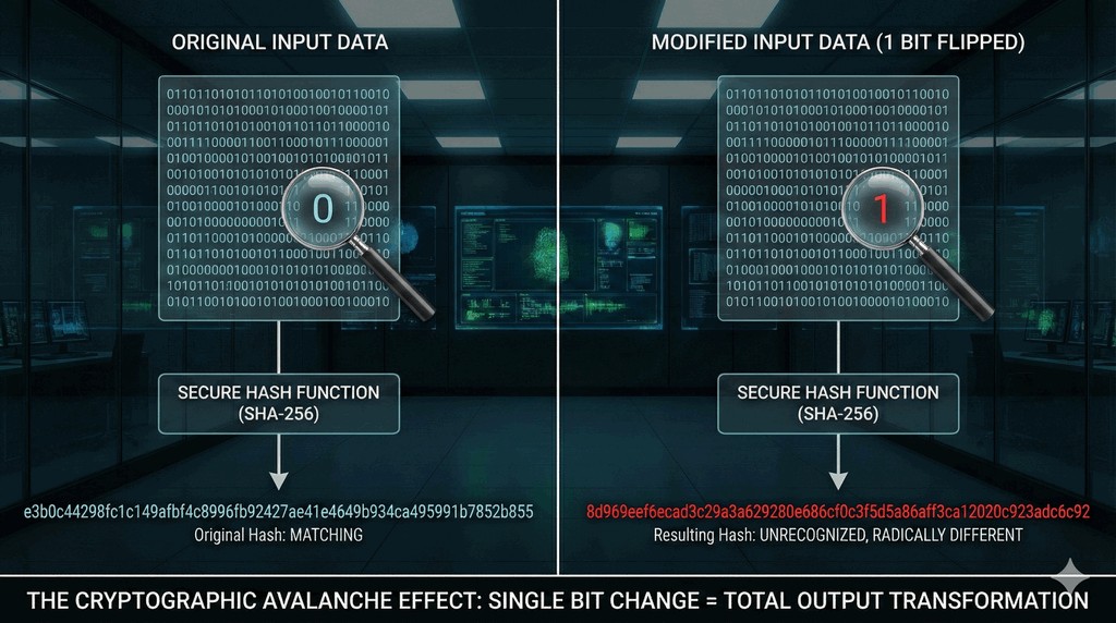 - Zmiana choćby jednego bitu w pliku powoduje drastyczną zmianę całego skrótu wyjściowego.