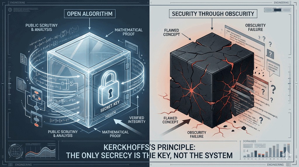 - Eksperci odrzucają podejście zwane „bezpieczeństwem przez ukrywanie" (ang. security through obscurity), które polega na ukryciu samego mechanizmu szyfrowania.