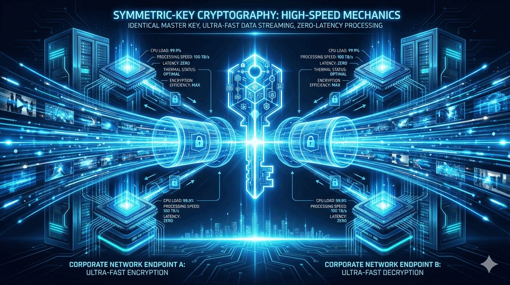 - Polega na wykorzystaniu tego samego klucza zarówno do szyfrowania, jak i deszyfrowania.