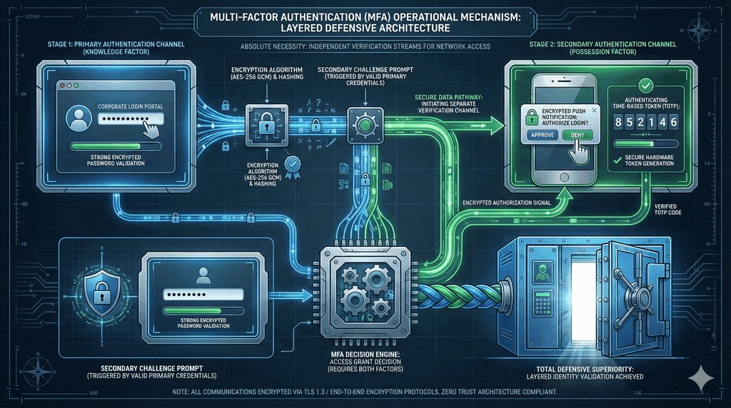 - Po podaniu poprawnego loginu i hasła system wymusza dodatkowe potwierdzenie – często powiadomieniem push lub kodem z aplikacji Google Authenticator.