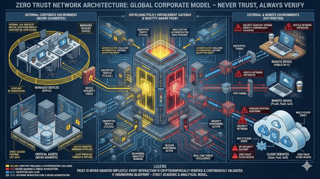 - Zgodnie z tą strategią żadne urządzenie ani użytkownik nie są traktowani jako bezpieczni tylko na podstawie faktu, że łączą się z biura firmy.
